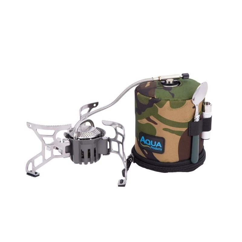 De Aqua DPM Gas Canister Cover beschikt over een fraaie camouflage print en is speciaal voor het beschermen van gasbussen gemaakt. Dankzij de DPM Gas Canister Cover blijft het gas tijdens de koude wintermaanden beter vloeibaar. De cover is voorzien van een rits aan de onderzijde en een lus op de zijkant waar een aansteker of bestek in gedaan kan worden. Geschikt voor gasbusjes tot 450 gram.
