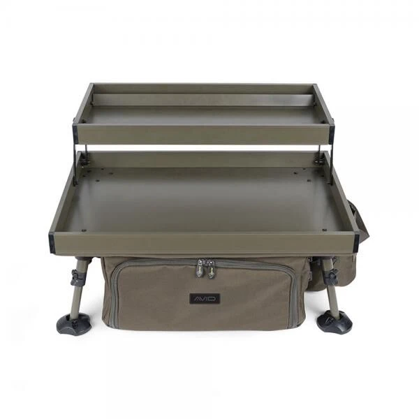 De Double Decker Bivvy Organiser is uitgevoerd met twee planken zodat je zoveel mogelijk essentiële items op te kunnen slaan. De tas van de Organiser kan in de onderste compartimenten kleinere onderdelen van je uitrusting bevatten.