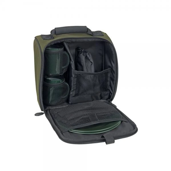 Fox R Series 2 Man Dinner Set is een stevig en waterafstotend 400 denier behandeld polyester materiaal Robuuste dubbele 10mm ritsen zorgen voor volledige betrouwbaarheid Verstevigde EVA handgrepen. Het is een compact tasje waar je alles bij elkaar hebt voor een dinner voor 2 personen. Geleverd inclusief: 2 x RVS messen, vorken, lepels en theelepels, 2 x ronde groene borden, 2 x groene mokken, 1 x kurkentrekker, 1 x groot potje met schroefdeksel, 2 x kleine potjes met schroefdeksel, 1 x Micro fleece handdoek Materiaal buitenzijde 100% Polyester, Vulling 100% Polyethyleen, Voering 100% Polyester Afmetingen: 28cm x 12cm x 28cm.
