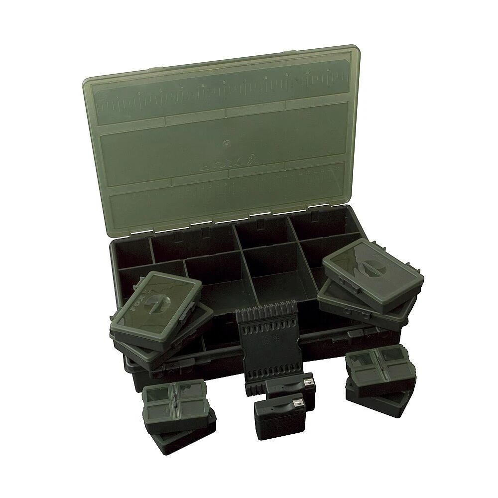 - Large inclusief: 8 Compartment Box, 2 Compartment Box, 4 Compartment Box x 2, Flip Top 4 Compartment Box x 4, Rig Board, Spool Dispenser x 2