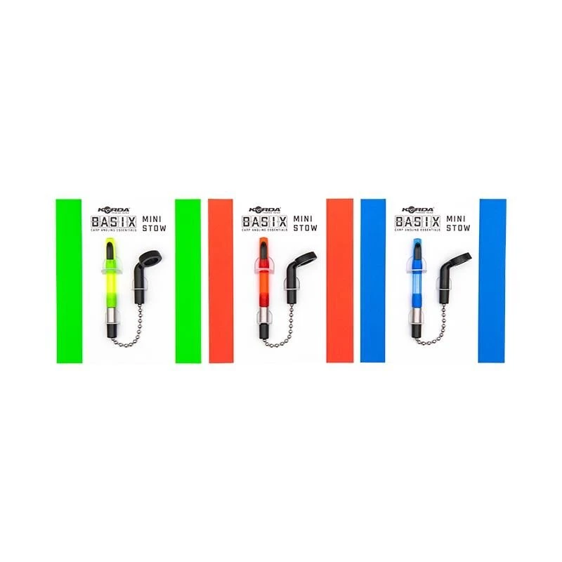 De Korda Basic Mini Stow is de kleinere versie van de beroemde Korda Stow hangers, ze worden al jaren gebruikt door menig karpervisser. Het handige van deze hangers is dat deze zowel met strakke als slappe lijnen gevist kunnen worden. De lijn laat bij een aanbeet vanzelf los uit de clip aan de zijkant van deze hanger. De roestvrijstalen ketting is bij levering de perfecte lengte voor de meeste beetmelders, in het bijzonder de Delkim series. Daarnaast wordt de hanger standaard geleverd met een gewichtje. Extra gewichten kunnen in de Stow serie worden aangekocht. De Basix Mini Stow kan worden uitgerust met een Mini Isotope, en wordt onder uw beetmelder gemonteerd met behulp van een voorgevormde hockeystick, waar de kogelketting in wordt geschroefd. Hij is verkrijgbaar in rood, groen of blauw.