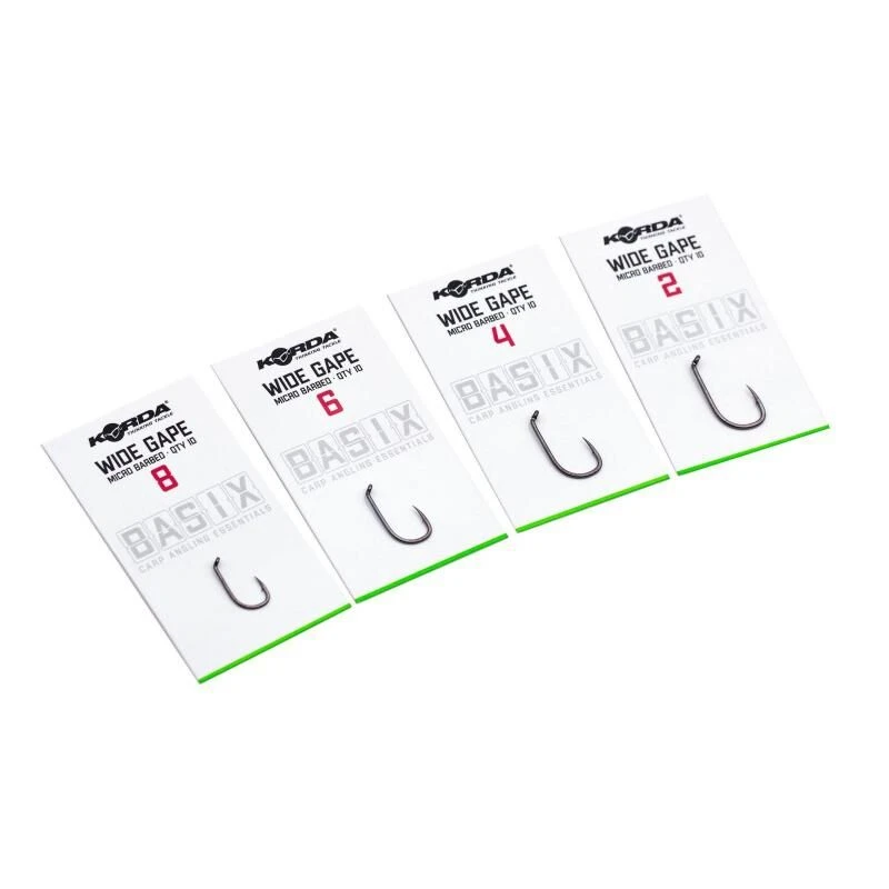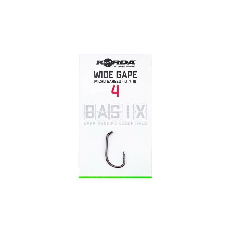 De Korda Basix Wide Gape haken zijn gemaakt op een allround doelgroep karpervissers. Deze kunnen perfect gebruikt worden voor een breed scala aan ready rigs zonder daar extra componenten aan hoeven toe te voegen. Of je nou met boilies, pop-ups of wafters vist, deze haken zijn voor iedere situatie geschikt. Door de agressieve in-turned oog draait de haak heel snel en grijpt meteen in de mond van de vis zonder dat er kickers of alligners gebruikt hoeven te worden. De haak wordt gemaakt met X Gauge wire. Dus is het overal te gebruiken.