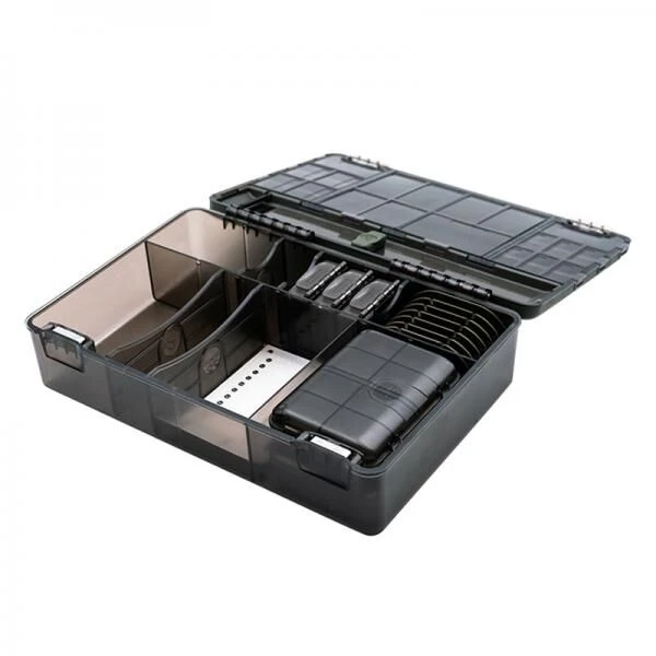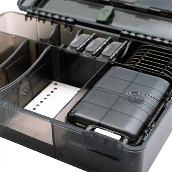 De Korda Tackle Box is uitgevoerd met een extra handige sluiting. De tacklebox is voorzien van verschillende compartimenten die veilig afgesloten kunnen worden. Daarnaast biedt deze tacklebox ruimte aan allerlei rig accessoires en dankzij de overzichtelijke indeling heeft u alles snel voor handen. Ook zijn er leader safes en mini compartment boxen verkrijgbaar die naadloos passen in deze Korda Tackle Box.