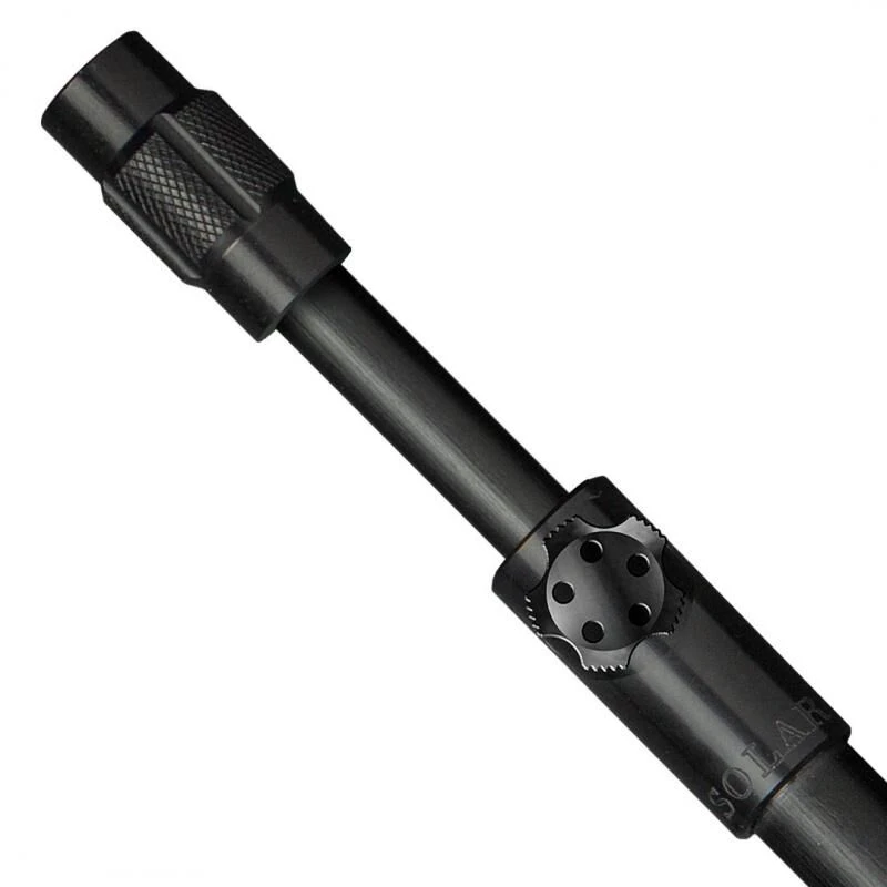De lancering van een geheel nieuwe high end bankware range van Solar Tackle, waar we zelf erg enthousiast over zijn! De BlackLite Range is een vederlichte range, vol met features, functionaliteit, in de UK ontworpen en geproduceerd en zoals u gewend al meer dan 30 jaar van ons gewend bent, van absolute topkwaliteit! Vervaardigd uit high grade aluminium en voorzien van gehard geanodiseerde zwarte finish en voorzien van stainless onderdelen. De BlackLite Aluminium Banksticks zijn voorzien van onze nieuwe captive thumb schroeven, welke niet meer kunnen kwijtraken, een lichtgewicht carbon binnenbuis voor gewichtsbesparing en in 4 lengtes beschikbaar.