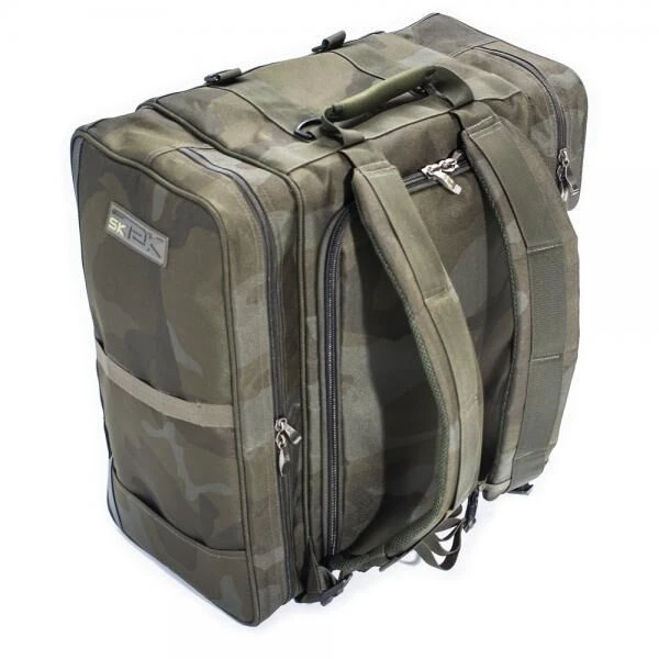 Het perfecte multifunctionele bagage; rugzak, tas of trolley tas in één. Gemaakt van ons slijtvaste maar subtiel gestileerde SK-TEK-camouflage materiaal; volledig gevoerd, gewatteerd en versterkt om de tas zijn stevigheid te behouden zodat men makkelijk bij de inhoud kan. De zakken zijn allemaal gemaximaliseerd om verspilling van ruimte te beperken en zijn zo groot dat ze eenvoudig de modulaire Sonik-accessoiretassenkunnen kunnen herbergen.